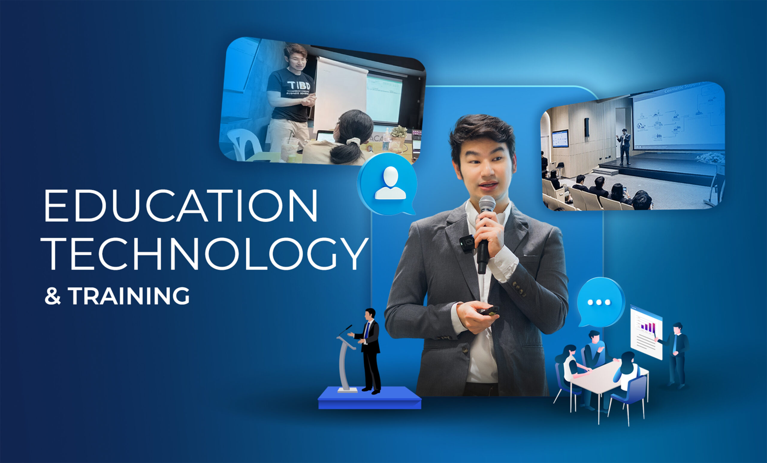 หลักสูตรอบรมสำหรับผู้ประกอบการ เจ้าของแบรนด์ หรือผู้ที่กำลังจะเข้ามาในตลาดอุตสาหกรรมสุขภาพและความงาม สำหรับพัฒนาทักษะในองค์กรทั้ง ในรูปแบบหลักสูตรออนไลน์ ผ่านห้องเรียน TIBD Classroom ที่คุณสามารถเข้ามาพัฒนาทักษะได้แบบเรียลไทม์ และเรายังให้บริการการจัดอบรมภายในองค์กรในรูปแบบของ TIBD สำหรับสร้างองค์ความรู้ให้กับบุคลากรของคุณได้ในทุกระดับตั้งแต่ ระดับพนักงาน จนถึงระดับผู้บริหาร เพราะการจัดอบรมของเราจะทำการวิเคราะห์และจัดเตรียมกิจกรรม เนื้อหาความรู้ ให้ตรงกับกลุ่มผู้เข้าร่วมมากที่สุด การพัฒนาบุคลากรภายในองค์กรจะทำให้องค์กรมีความแข็งแรง สามารถทำงานร่วมกันระหว่างแผนก หรือประสานงานกันได้ดียิ่งขึ้น